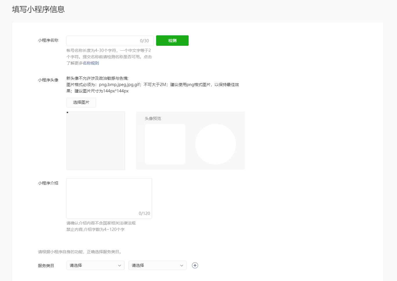 2.完善小程序信息注册小程序后,登录小程序后台首页,点击【填写】完善小程序信息,如名称、图标、描述等;