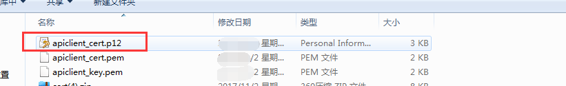 下载证书文件后,并解压,后续需上传“apiclient_cert.p12”如图中所示资料到商城后台